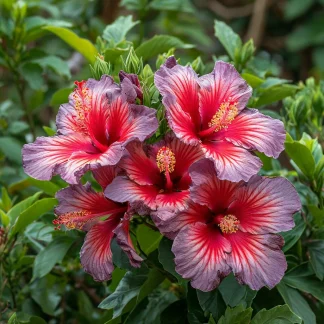 - Редкие и изысканные саженцы: мы предлагаем вам уникальную возможность купить сорт гибискуса «Кримсон Флейм» с нежно-фиолетовыми цветами и розовой сердцевиной.