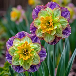 - Неповторимая окраска: главная особенность этого сорта — его уникальная, завораживающая окраска, напоминающая зимний пейзаж. Середина цветка украшена яркой, солнечной желтой коронкой, словно кусочек солнца в зимнем саду. Основной цвет цветка — нежный зеленый, создающий эффект свежести и прохлады. Крайние лепестки имеют нежный фиолетовый оттенок, напоминающий утреннюю дымку или зимние сумерки.
